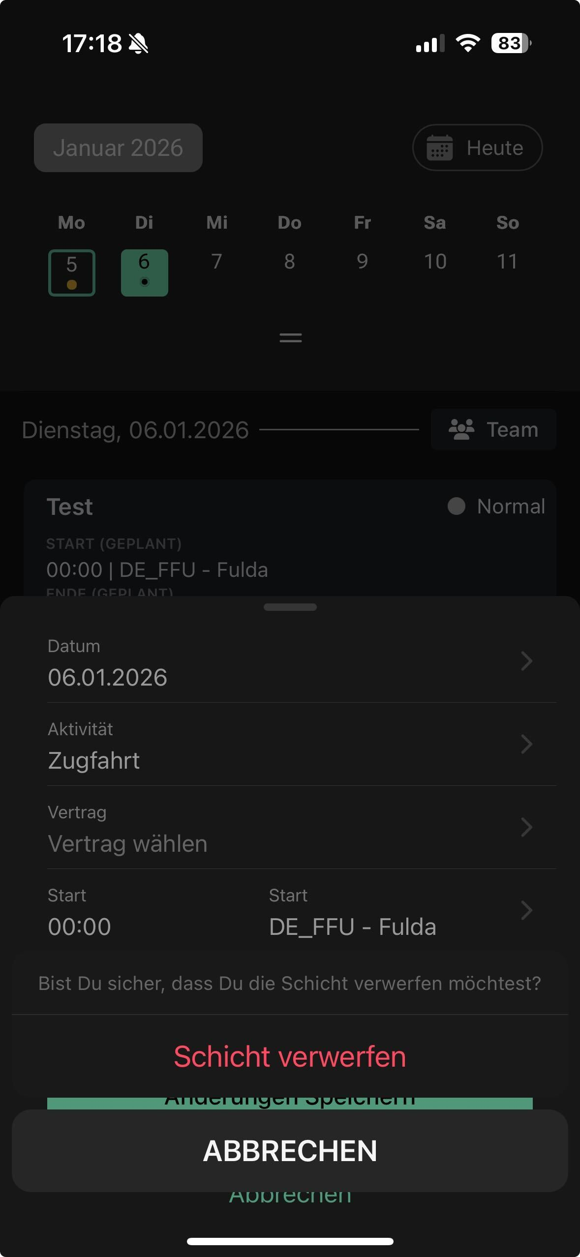Aktuell gibt es ein Anzeigeproblem beim Erstellen von Schichten: Wenn ihr auf „Änderungen speichern“ klickt, zeigt die App fälschlicherweise einen Dialog an, der fragt, ob ihr die Schicht verwerfen möchtet.