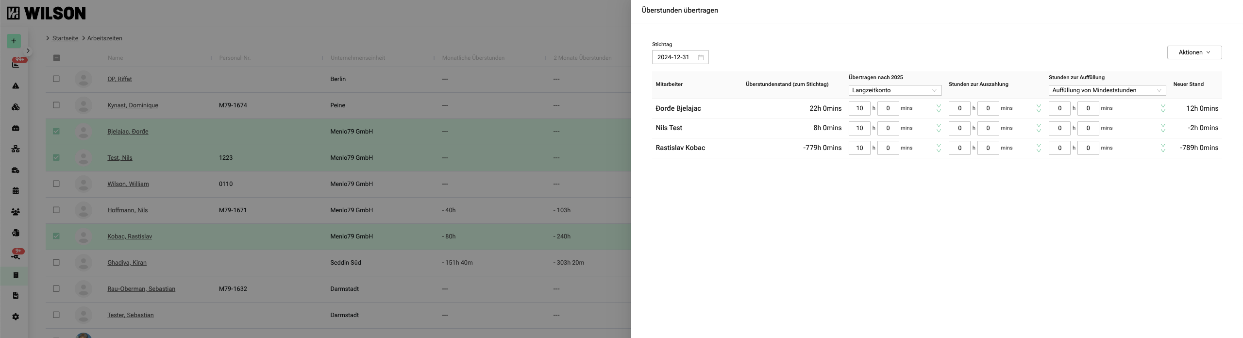 Mit dieser Funktion stellt Ihr sicher, dass der Jahreswechsel in der Arbeitszeitabrechnung strukturiert, konsistent und transparent abläuft – unabhängig davon, ob Ihr einzelne Sonderfälle oder große Nutzergruppen bearbeitet.