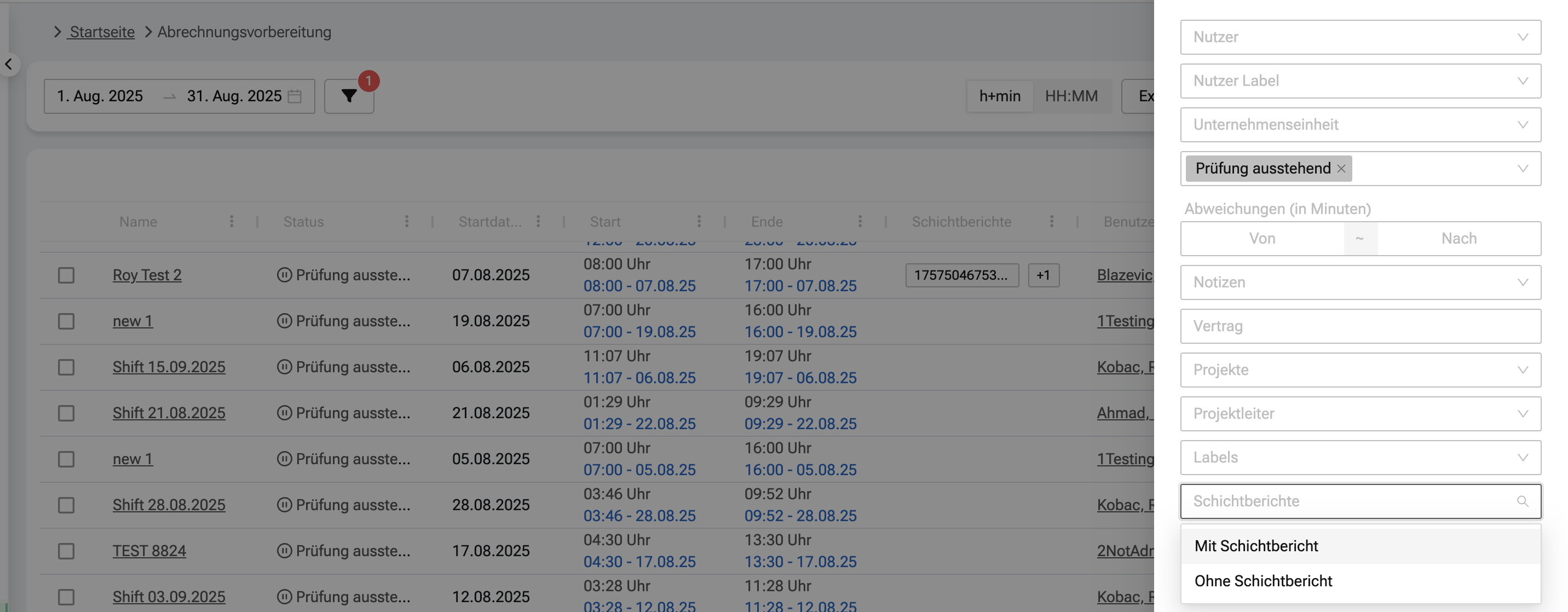 In der Abrechnungsvorbereitung und den jeweiligen Schichtlisten steht euch ein neues Feld zur Verfügung: Schichtberichte.