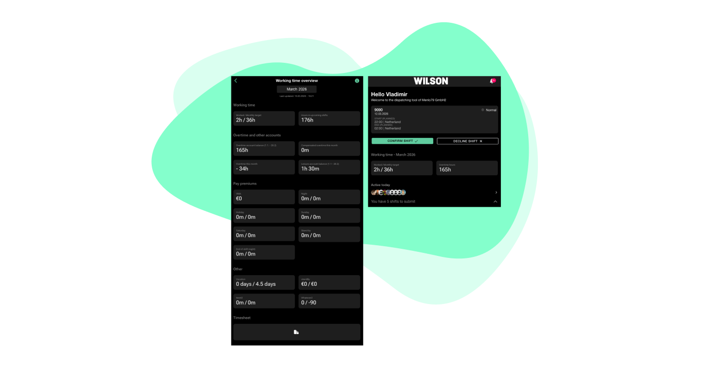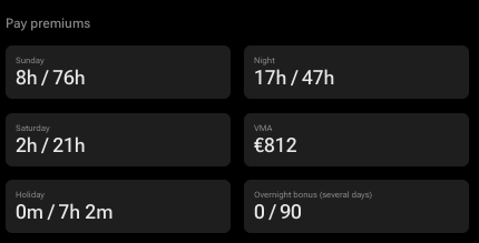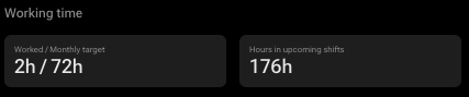 Here you can see the information from the home widget, supplemented by an indication of how many hours are already scheduled for you in future shifts within the selected month.