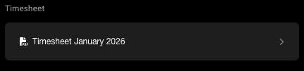If a timesheet has been created and sent for the selected month, you can view and download it here. A timesheet is only available if it has been generated in the portal.