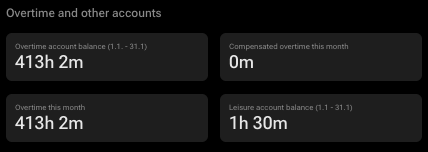 In this section, you will find all information related to your overtime. In addition to the current balance of your overtime account, we also show whether overtime was paid out to you in the selected month and in what amount.