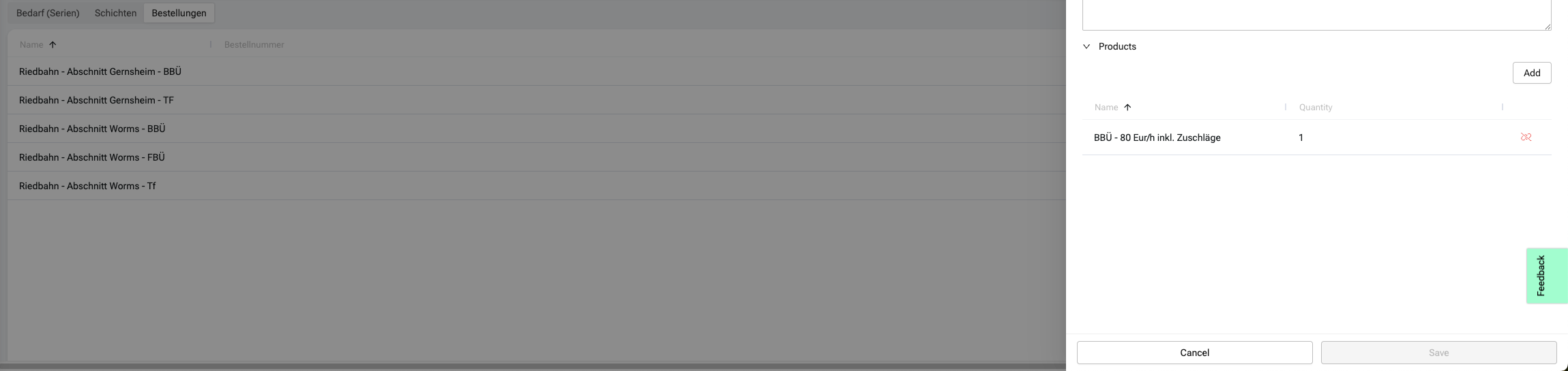 An order is therefore no longer linked to an abstract set of rules, but to a concrete product – such as “Train Driver €75 per hour” or “BBÜ €80 per hour”. This makes it immediately clear how services are billed.